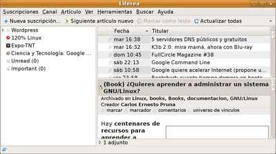 Para tener Liferea, instalamos el paquete liferea de los repositorios oficiales de Ubuntu.