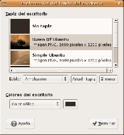 Si queremos instalar nuevos fondos de escritorio pulsamos en el botón de '''Añadir tapiz''' y buscamos la imagen que queremos como fondo de escritorio. Después la seleccionamos y pulsamos '''Terminar'''. | Si queremos instalar nuevos fondos de escritorio pulsamos en el botón de '''Añadir tapiz''' y buscamos la imagen que queremos como fondo de escritorio. Después la seleccionamos y pulsamos '''Terminar'''. | ||